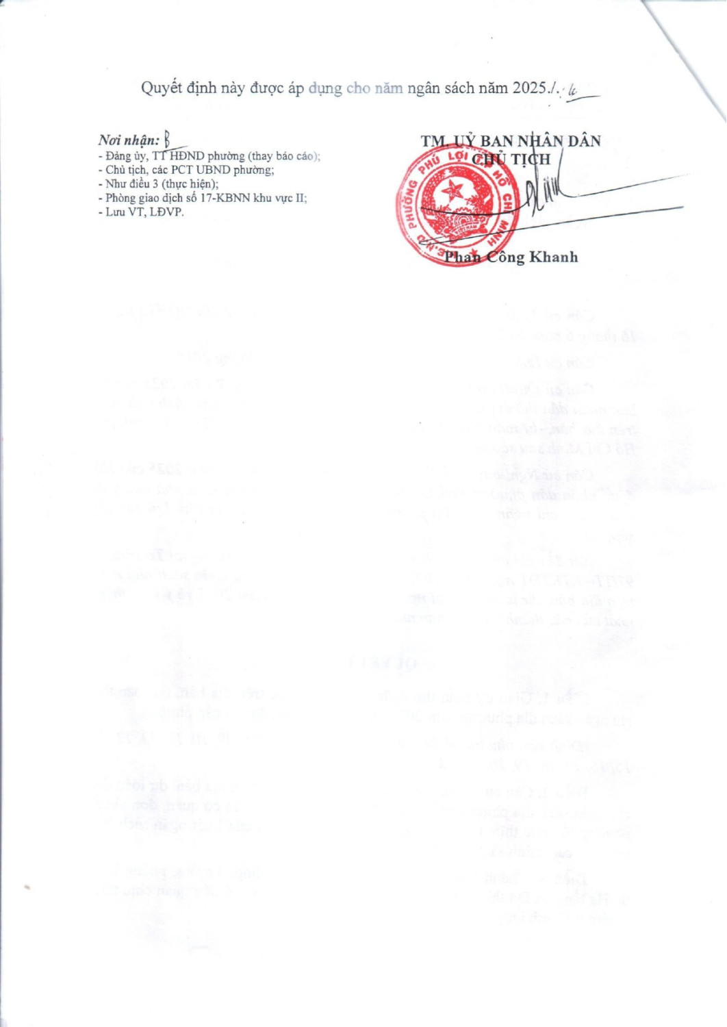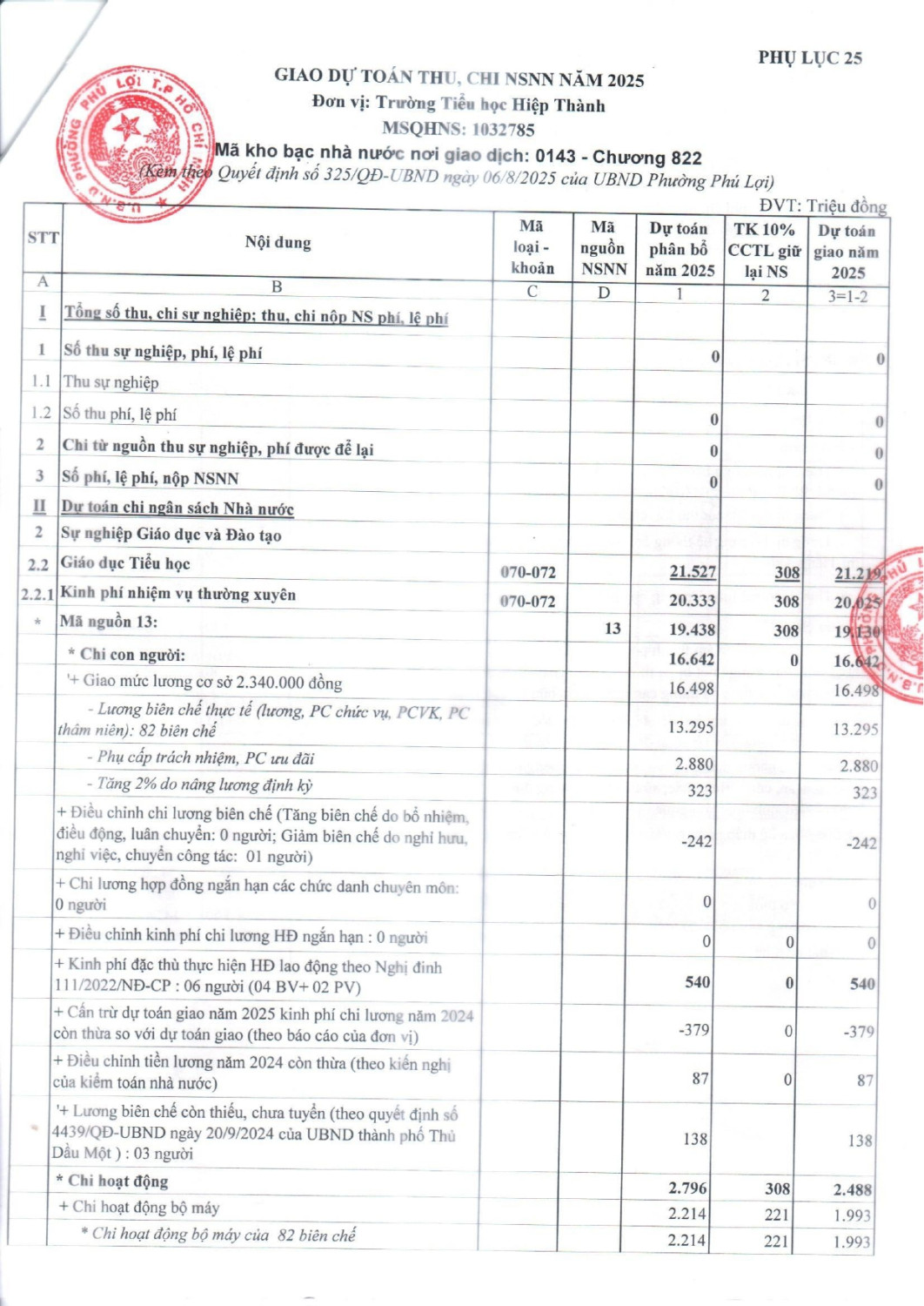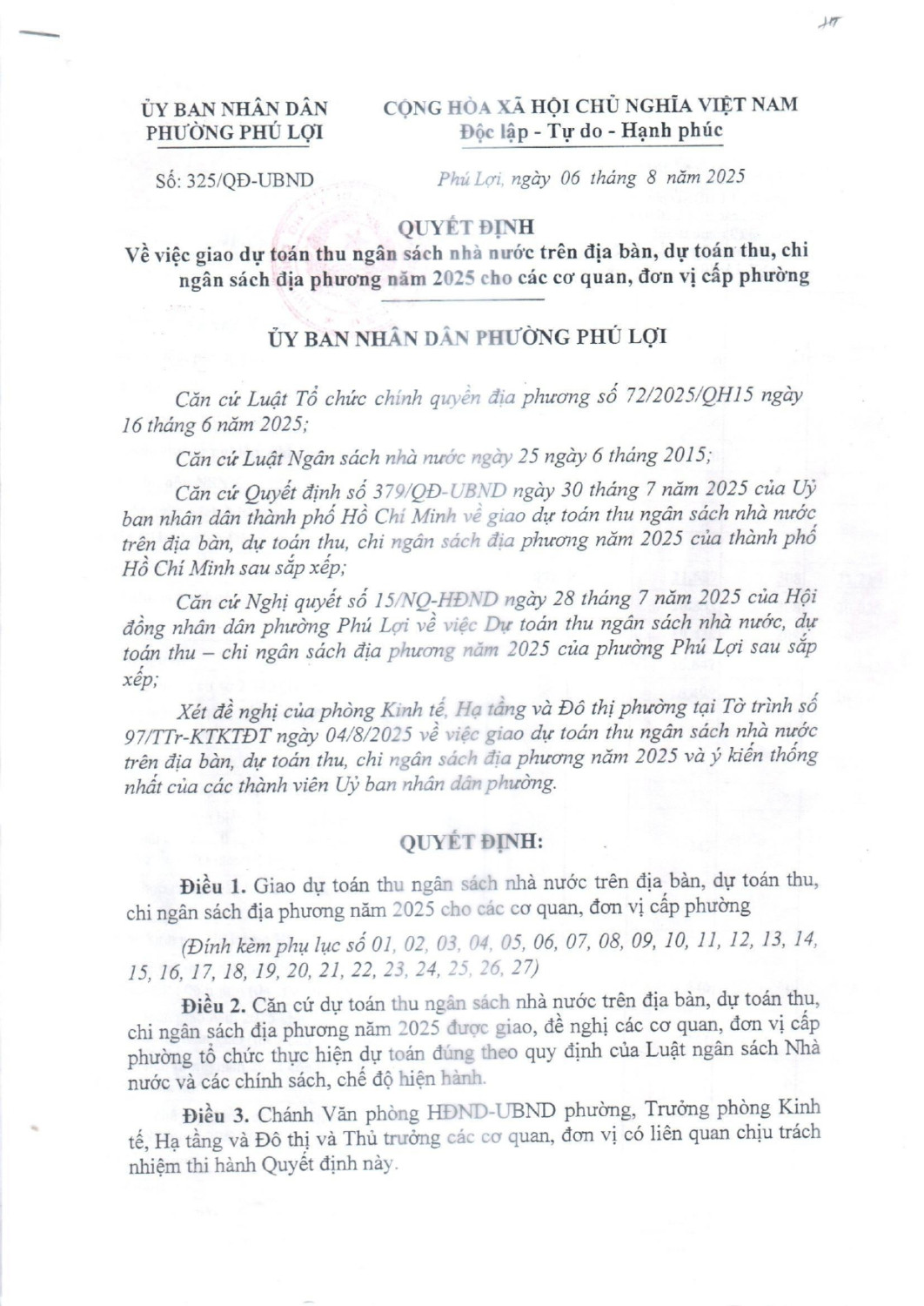 Công khai việc giao dự toán ngân sách nhà nước trên địa bàn, dự toán thu chi ngân sách địa phương năm 2025 thuộc địa bàn phường Phú Lợi