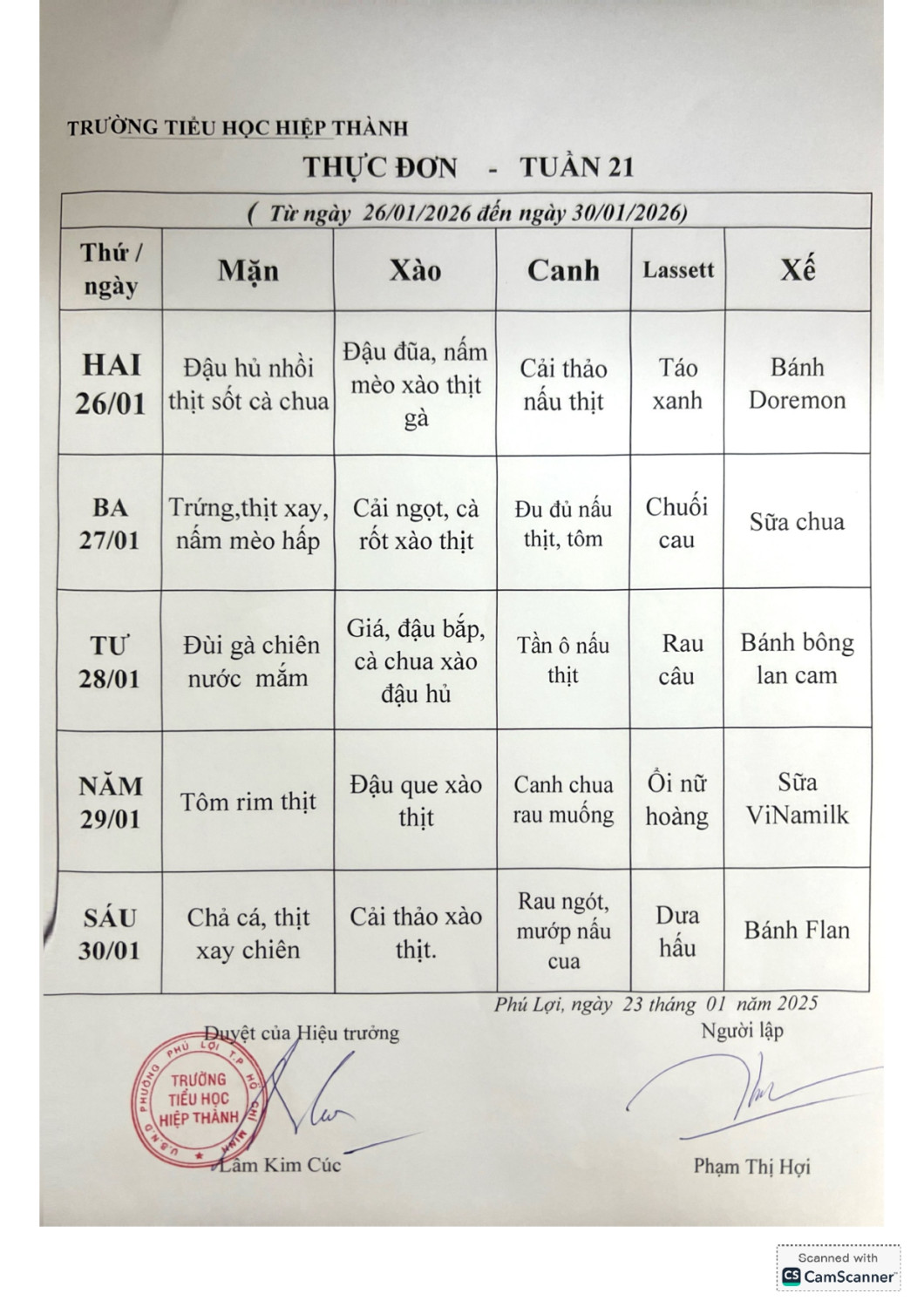 Thực đơn tuần 21