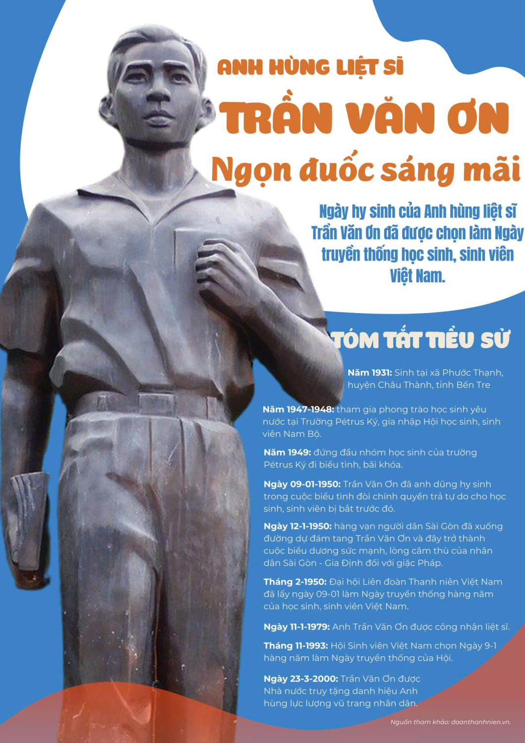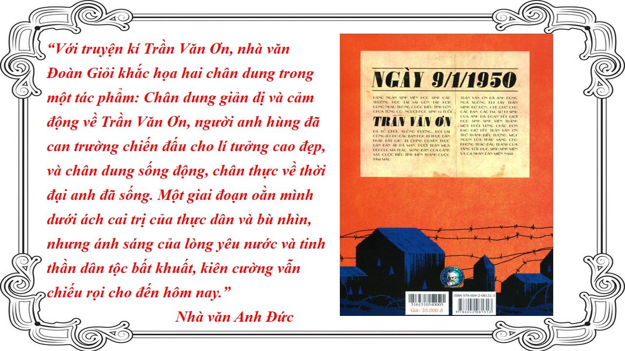 Lễ tang anh Trần Văn Ơn cũng đã được cử hành trên khắp các tỉnh thành trong cả nước. Hàng triệu lượt học sinh, sinh viên và đồng bào các giới đã đeo băng tang truy điệu với lòng thương tiếc và xuống đường tuần hành bày tỏ ý chí căm thù giặc và ý chí đấu tranh kiên quyết chống thực dân Pháp xâm lược và bè lũ tay sai. Với sự kiện lịch sử đó, noi gương và ghi nhận tinh thần đấu tranh bất khuất của anh Trần Văn Ơn và học sinh - sinh viên trong những ngày đầu kháng chiến, Đại hội toàn quốc Liên đoàn Thanh niên Việt Nam lần thứ nhất tháng 2 năm 1950 tại Việt Bắc đã quyết định lấy ngày 09/01 hàng năm là Ngày truyền thống học sinh - sinh viên. Sự hi sinh cao đẹp của anh Ơn mãi mãi là ngọn đuốc sáng cho bao thế hệ trẻ học tập và noi theo. Cuốn sách Trần Văn Ơn của nhà văn Đoàn Giỏi được nhà xuất bản Thanh Niên ấn hành năm 2012. Qua hơn 191 trang sách Khổ giấy 13.5 x 20.5 cm, cuộc đời đấu tranh cách mạng của liệt sĩ Trần Văn Ơn được tái hiện một cách vô cùng chân thực và sinh động. Đoàn Giỏi (1925 - 1989) là nhà văn hiện đại Việt Nam. Các tác phẩm của ông thường viết về cuộc sống, thiên nhiên và con người Nam Bộ. Trong đó có tập truyện kí về người học sinh yêu nước TRẦN VĂN ƠN câu chuyện kể về cuộc đời hào hùng, nhiệt huyết của người học sinh trường Pétrus Ký Trần Văn Ơn cùng học sinh sinh viên Sài Gòn tham gia đấu tranh chính trị, xuống đường chống chính phủ bù nhìn của chính phủ Bảo Đại và sự thống trị của Pháp. Cuốn sách khắc họa chân dung giản dị và cảm động về Trần Văn Ơn, người anh hùng đã can trường chiến đấu cho lí tưởng cao đẹp, và chân dung sống động, chân thực về thời đại anh đã sống. Một giai đoạn oằn mình dưới ách cai trị của thực dân và bù nhìn, nhưng ánh sáng của lòng yêu nước và tinh thần dân tộc bất khuất, kiên cường vẫn chiếu rọi cho đến hôm nay.