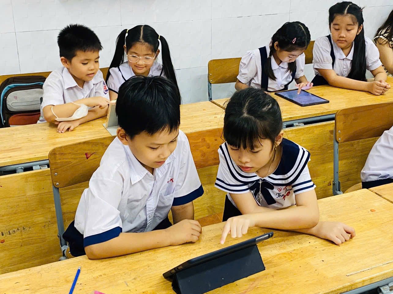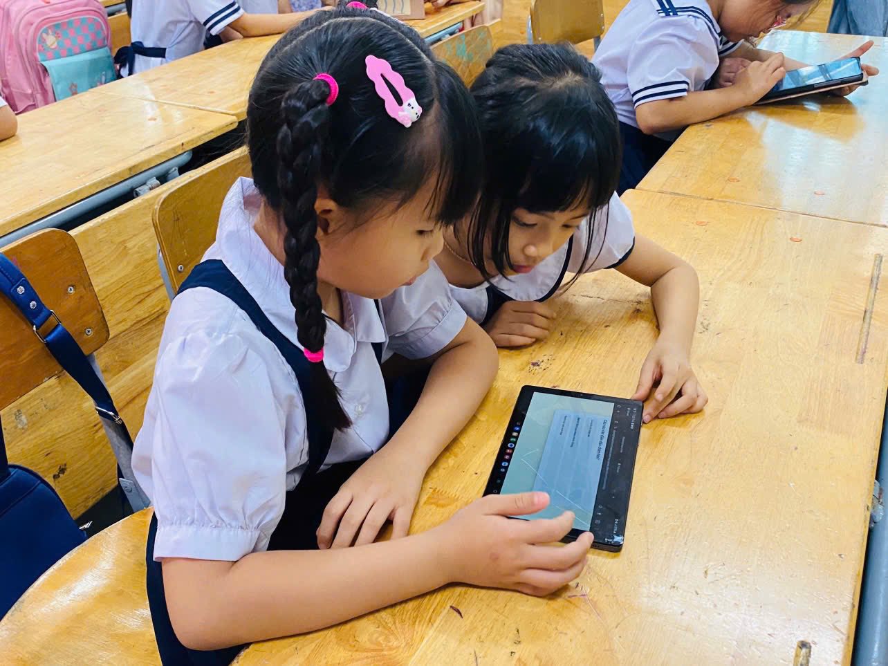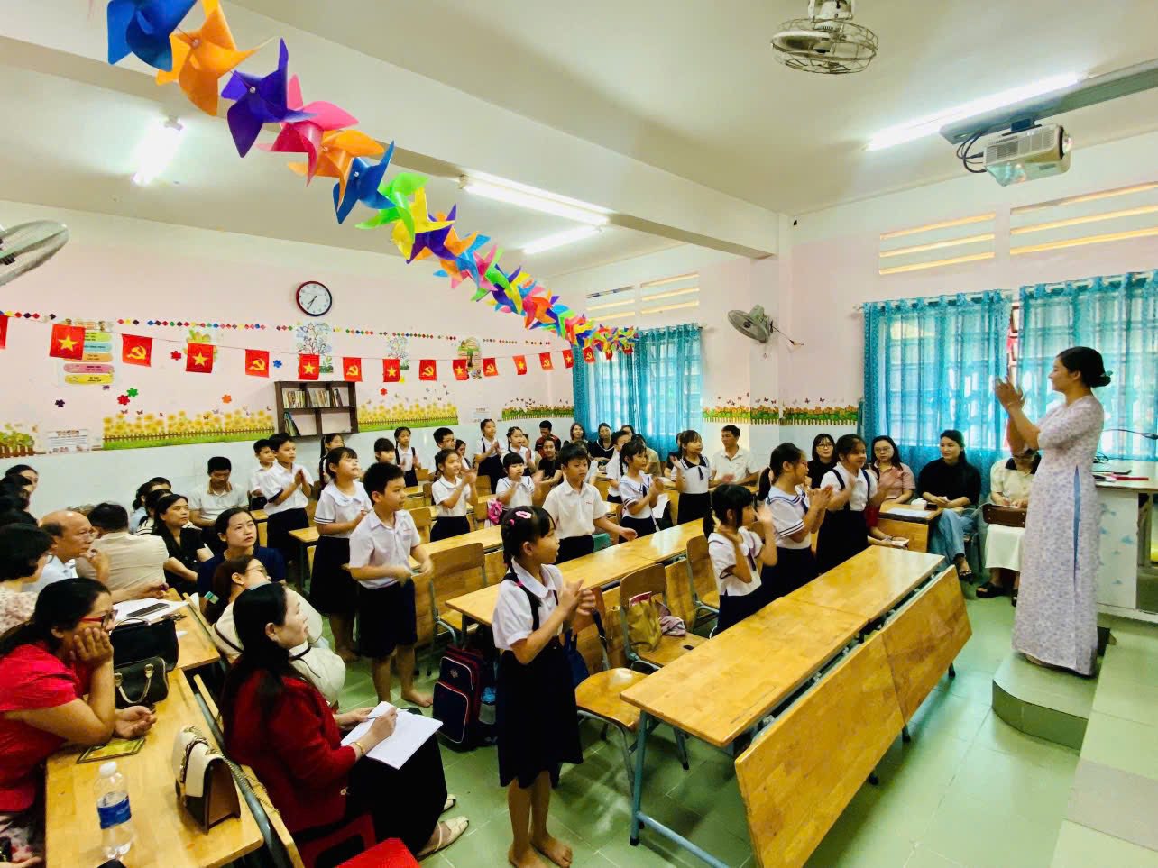 Trong tiết dạy minh họa, cô giáo đã tổ chức hoạt động học tập thông qua bài “Mở rộng vốn từ: Từ ngữ về các con vật nhỏ bé. Dấu chấm, dấu chấm hỏi”. Tiết học diễn ra sinh động, vui tươi với nhiều hình thức tổ chức phong phú, thu hút sự tham gia tích cực của học sinh. Việc ứng dụng hiệu quả các công cụ số đã góp phần nâng cao hứng thú học tập, giúp học sinh dễ dàng tiếp cận kiến thức và phát triển kỹ năng ngôn ngữ một cách tự nhiên. Sau phần thao giảng, tập thể giáo viên nhà trường đã tham gia trao đổi, nhận xét, đánh giá và rút kinh nghiệm tiết dạy. Các ý kiến đóng góp tập trung vào việc phát huy ưu điểm, đồng thời đề xuất những giải pháp nhằm nâng cao hơn nữa hiệu quả ứng dụng công nghệ trong giảng dạy. Sau tiết dạy, các thầy cô trong tổ chuyên môn đã trao đổi, đóng góp ý kiến nhằm tiếp tục hoàn thiện các giải pháp thực hiện chuyển đổi số trong dạy học, góp phần hình thành cho học sinh năng lực sử dụng thiết bị số hiệu quả, an toàn và phù hợp lứa tuổi. Buổi chuyên đề không chỉ tạo điều kiện để giáo viên học hỏi, chia sẻ kinh nghiệm mà còn góp phần thúc đẩy việc đổi mới phương pháp dạy học, đáp ứng yêu cầu chuyển đổi số trong giáo dục hiện nay. Một số hình ảnh buổi thao giảng chuyên đề: