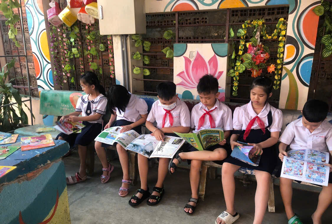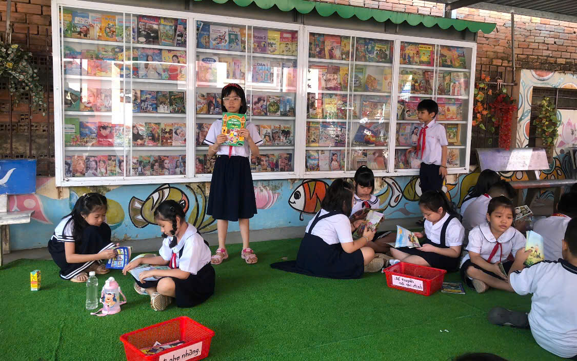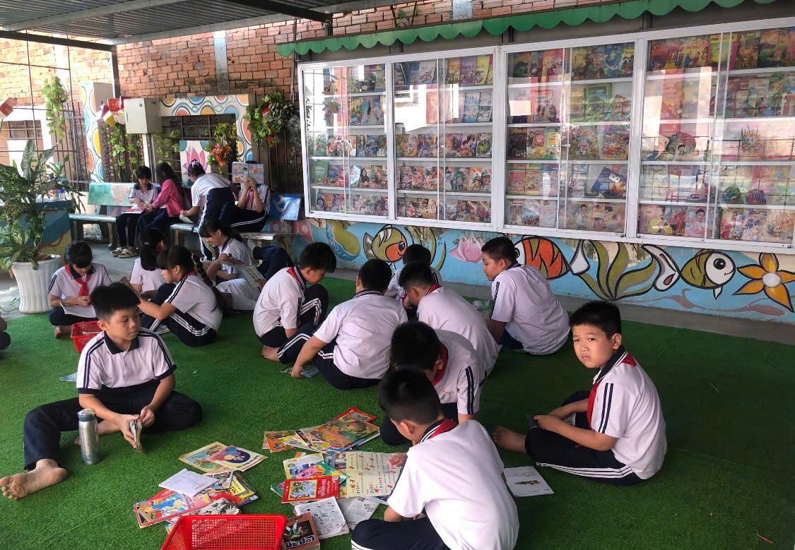 Các em học sinh đọc sách tại thư viện thân thiện