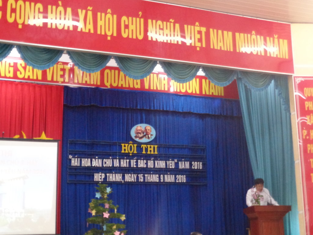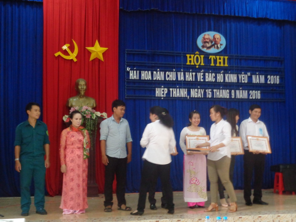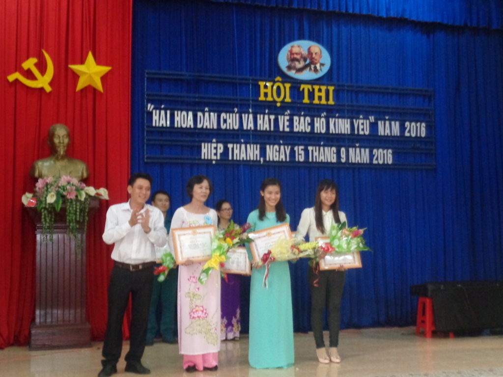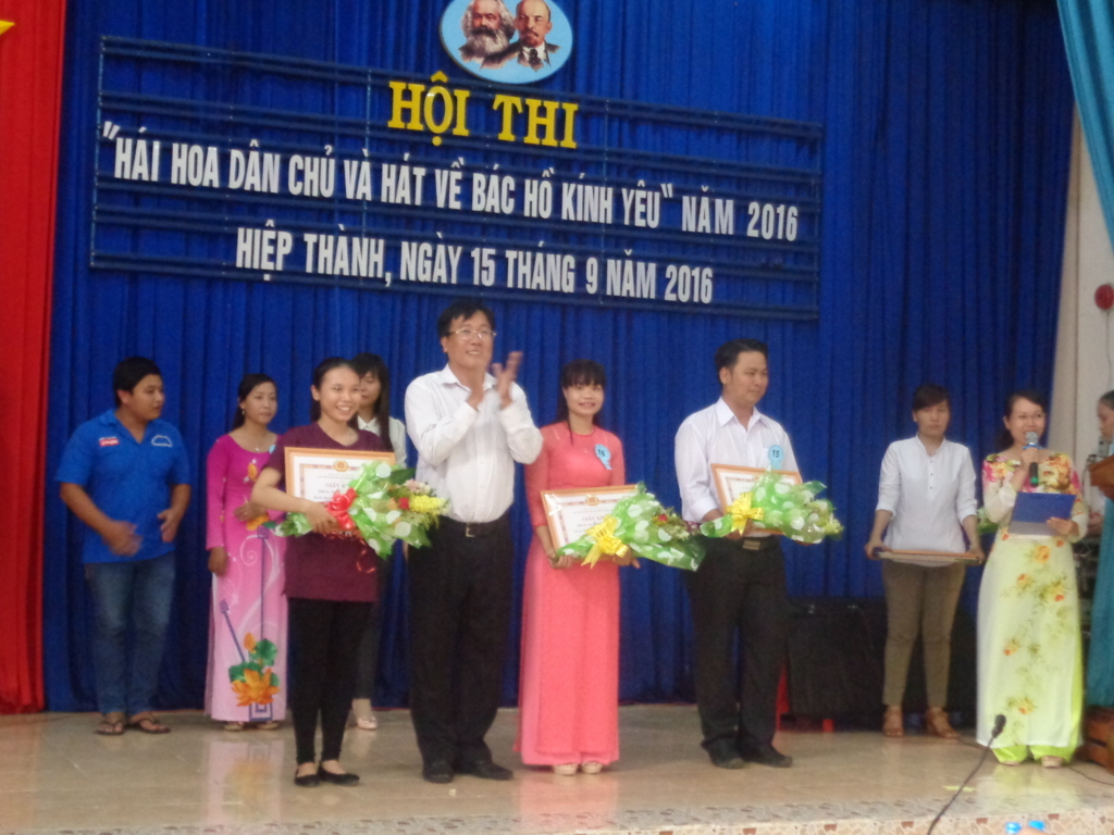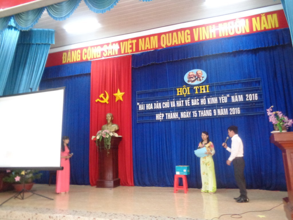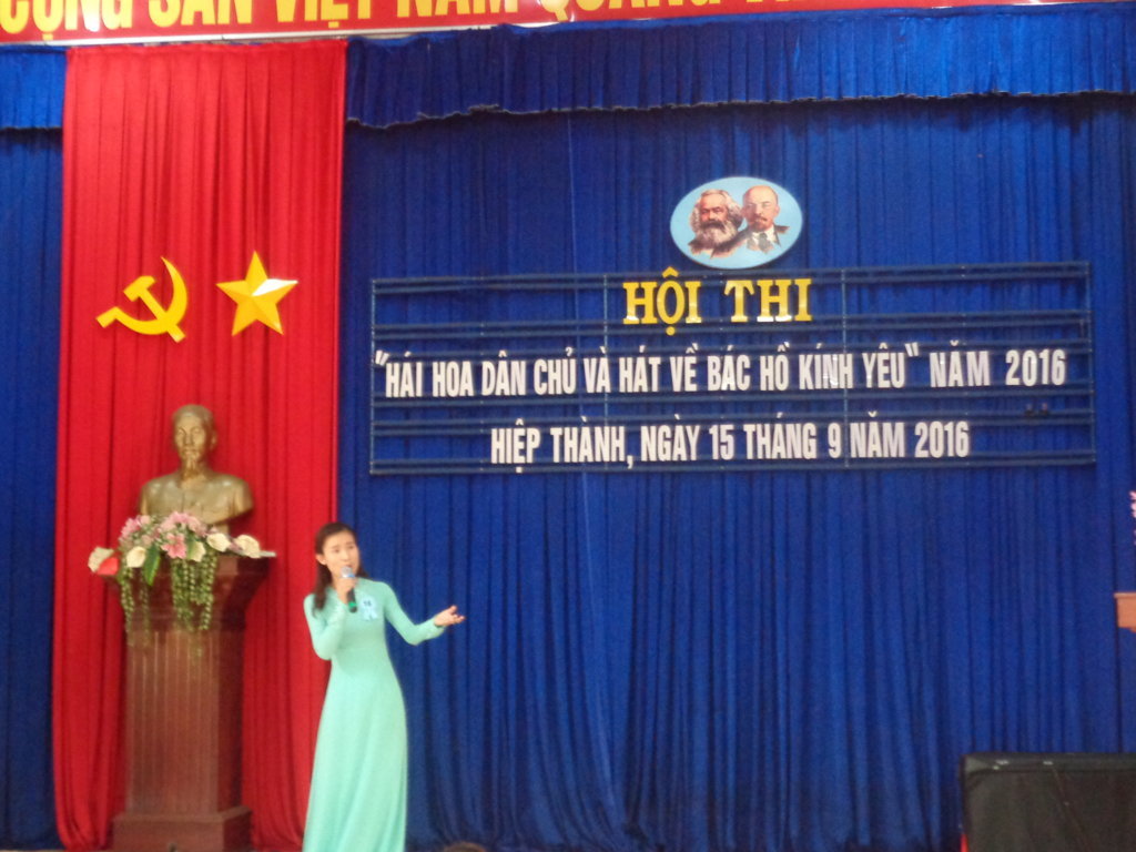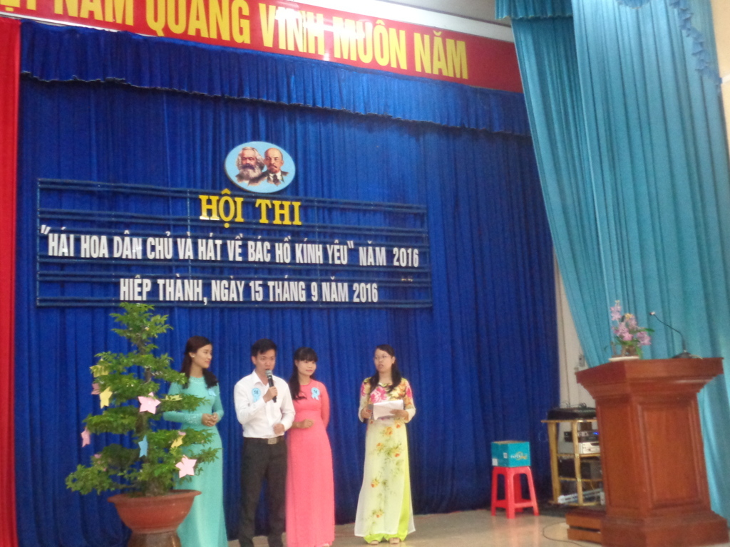 Hội thi diễn ra gồm 3 phần hái hoa dân chủ,đoán ý đồng đội,hát về Bác Hồ kính yêu trong không khí khá sôi nổi với các tiết mục đơn ca, song ca, tam ca, hát múa đều được thể hiện đúng chủ đề, nội dung. Các ca khúc biểu diễn đã thể hiện lòng kính yêu sâu sắc về Bác như: Bác Hồ một tình yêu bao la, Lời ca dâng Bác, Trông cây lại nhớ đến Người,Người là niềm tin tất thắng,dấu chân phía trước,miền trung nhớ Bác.....Chi bộ trường tiểu học Hiệp Thành tham gia hội thi với 3 đồng chí, Trần Minh Hải,Trịnh Thị Thắng,Thang Thị Hồng Nhung.Đồng chí Thang Thị Hồng Nhung đã trình bày ca khúc " Từ làng Sen" đạt hạng 2 của phần thi văn nghệ