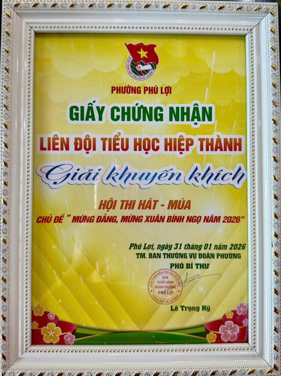 Sáng ngày 31/01/2026, Trường Tiểu học Hiệp Thành đã tham gia Hội thi Hát – Múa chủ đề “Mừng Đảng, Mừng Xuân Bính Ngọ năm 2026” do UBND phường Phú Lợi, Thành phố Hồ Chí Minh tổ chức.