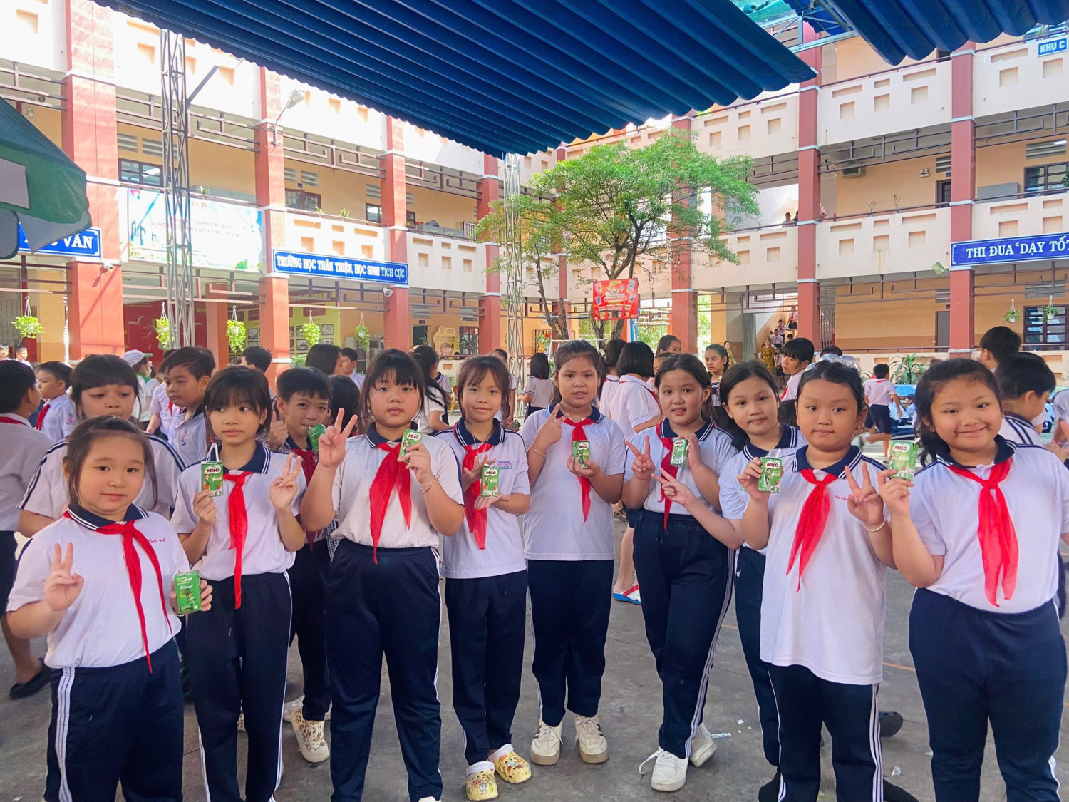 Trường Tiểu học Hiệp Thành phối hợp Công ty Milo phát sữa miễn phí cho học sinh